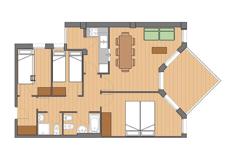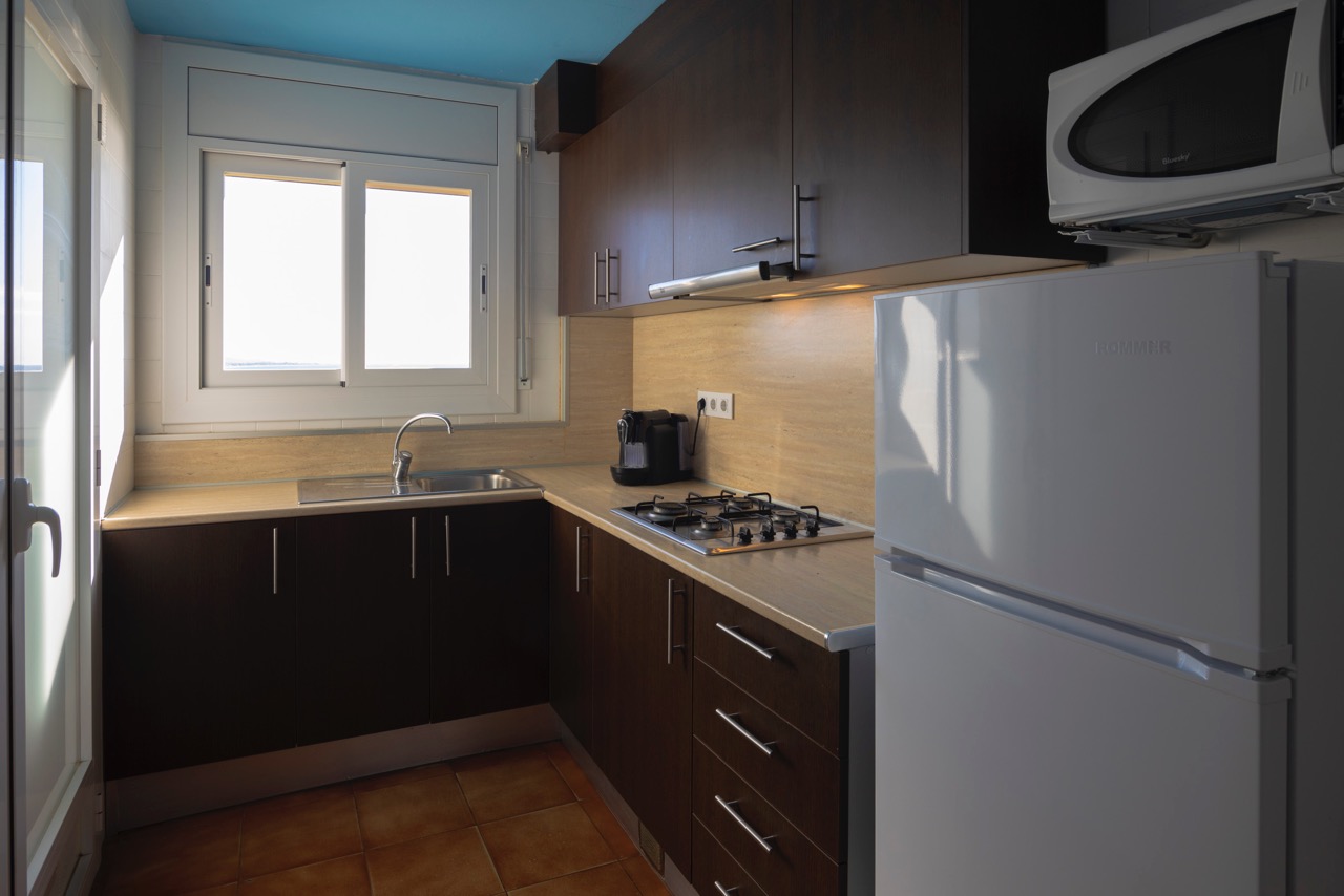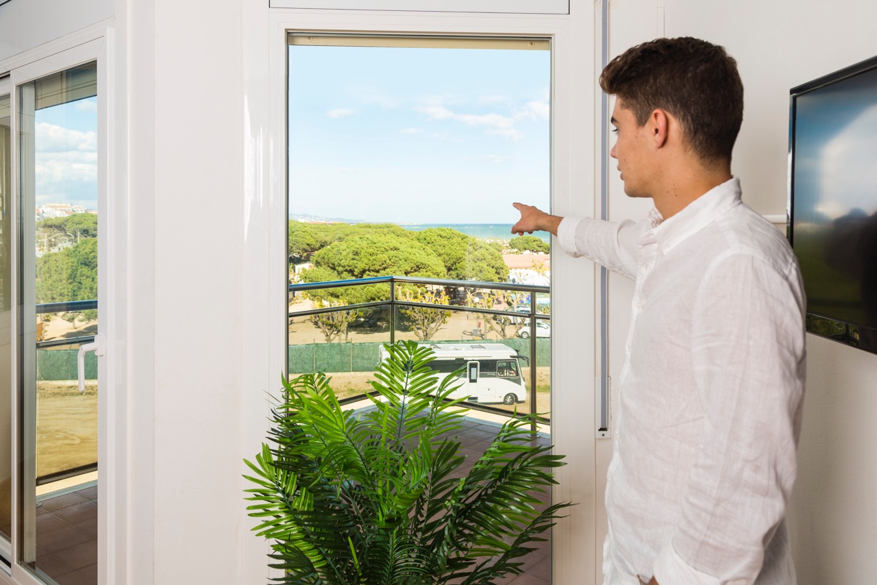 Apartments for 7 people, renovated, with sea views: Located on the seafront, right on the beach, they have 3 double bedrooms (1 double bed + 2 single beds + 1 bunk bed), 2 renovated bathrooms, living room (with 1 sofa-bed), new kitchen and balcony, with spectacular views of the sea, the beach, and the camping site pine forest (or swimming-pool). Spacious (from 70 to 90 m2 + 8 m2 balcony), with a lot of sun and very bright.