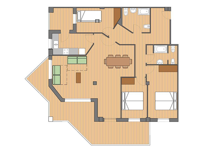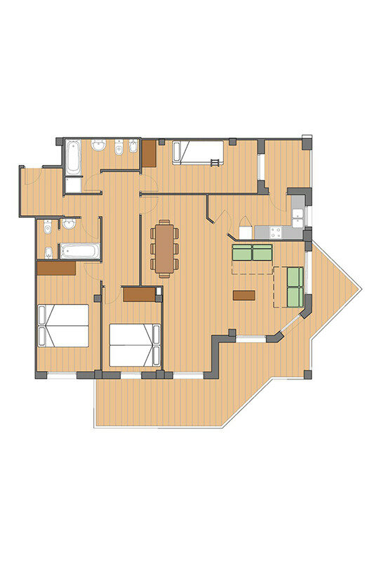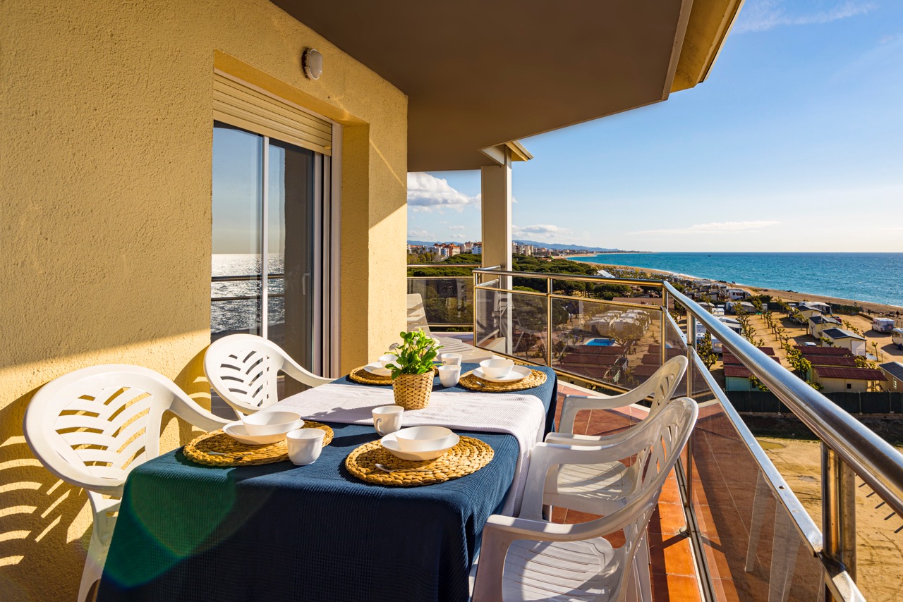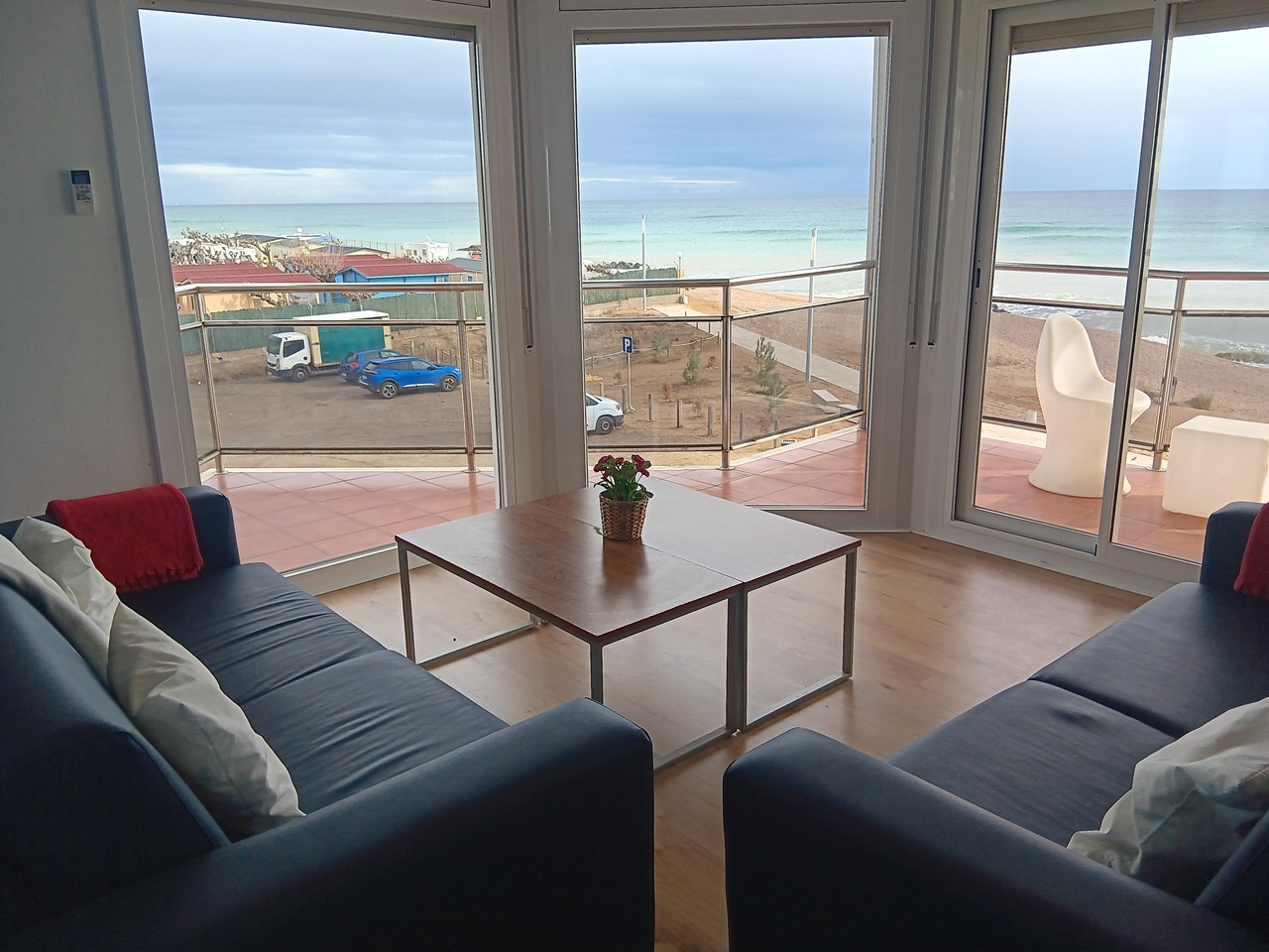 Appartementen voor 8 personen, volledig nieuw, en met frontaal uitzicht op zee: Gelegen aan de kust, direct aan het strand, hebben ze 3 tweepersoonsslaapkamers (1 tweepersoonsbed + 2 eenpersoonsbedden + 1 stapelbed), 2 nieuwe badkamers, woonkamer kamer-eetkamer (met 1 tweepersoonsslaapbank), nieuwe keuken en terras, met spectaculair frontaal uitzicht op de zee, het strand en het camping dennenbos (of zwembad). Ruim (115 m2 + 25 m2 terras), zonnig en zeer licht.